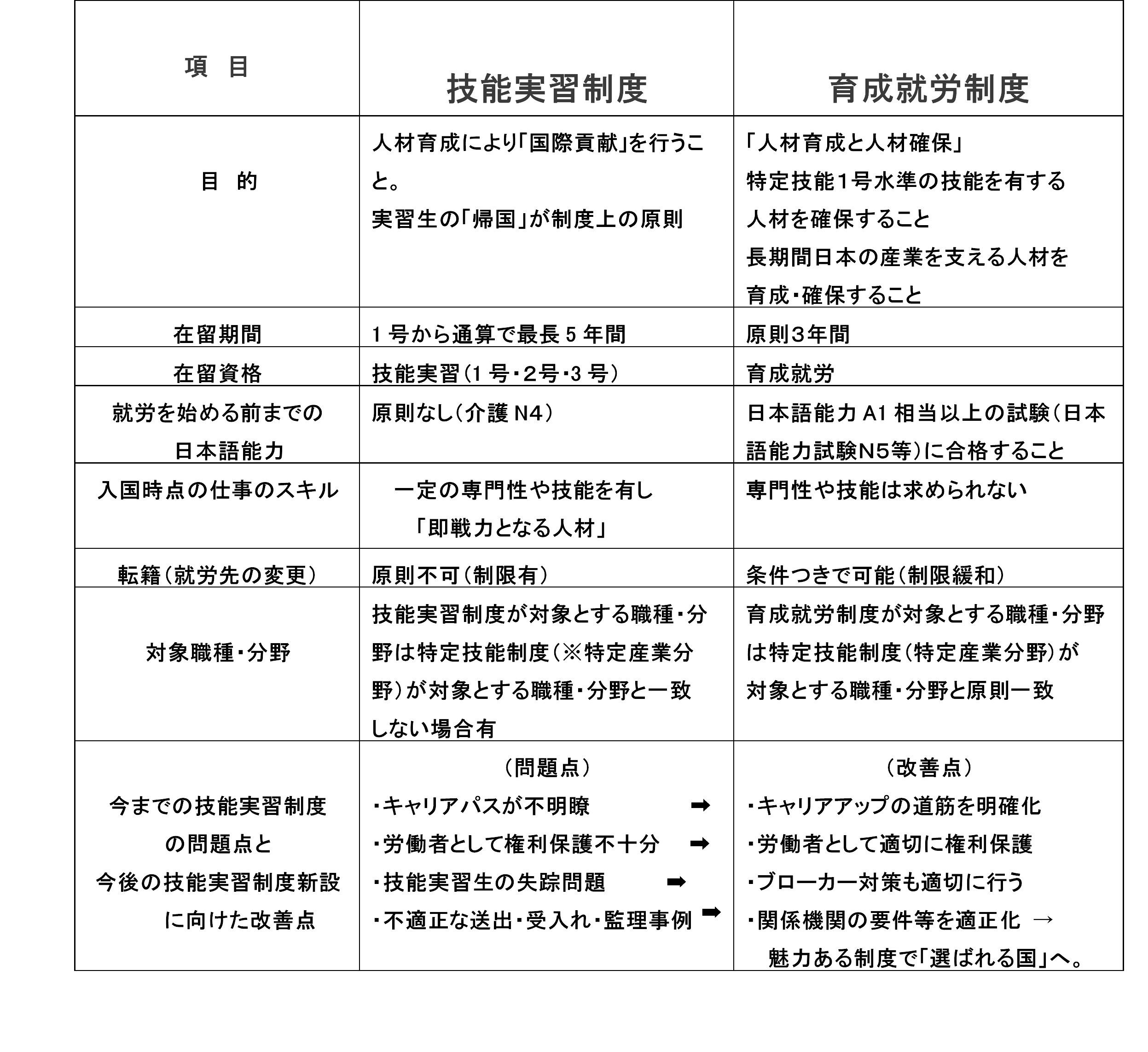 - 技能実習制度を解消して人材育成と人材確保を目的とする育成就労制度を創設
