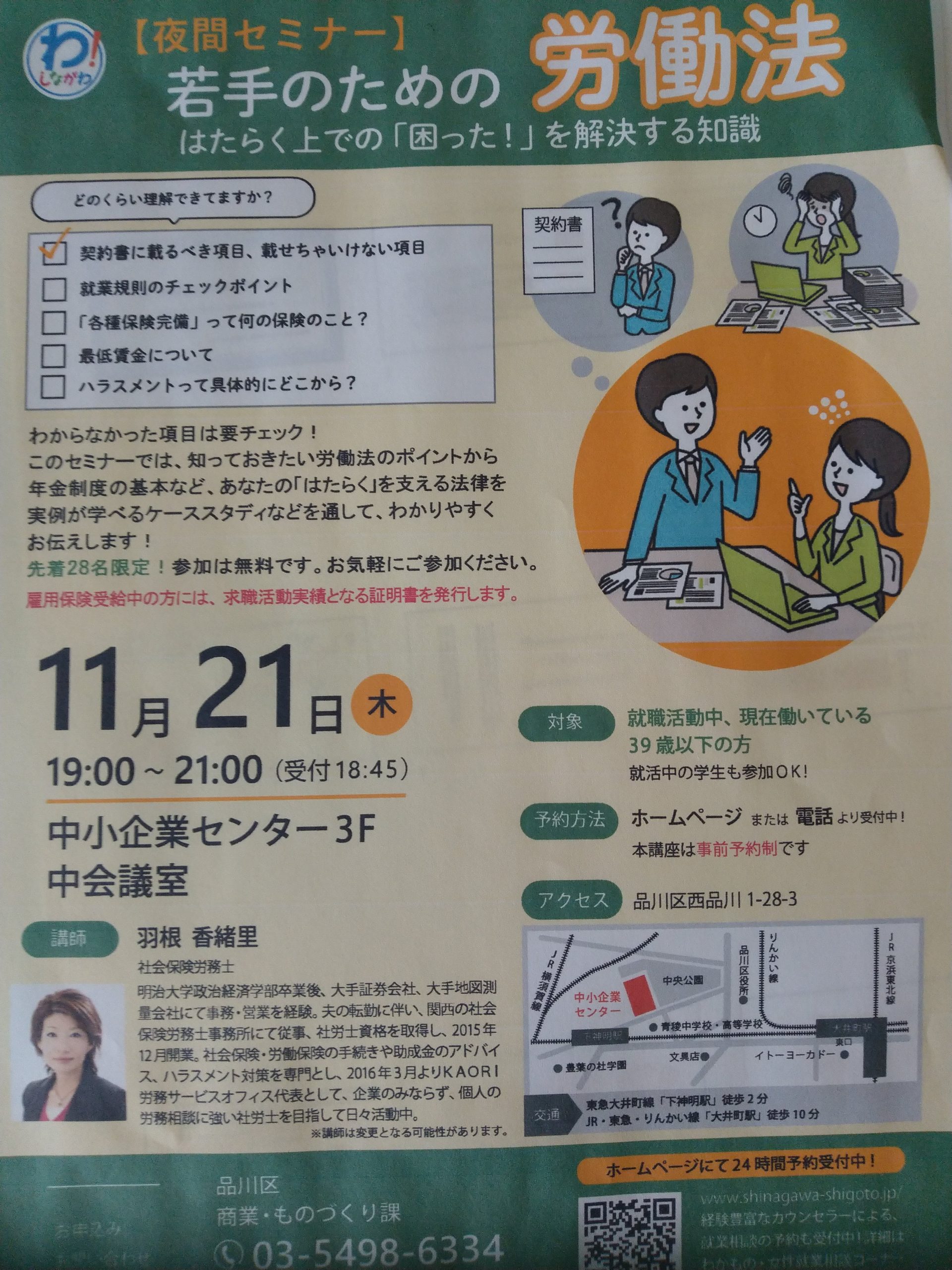 先日、求職者や従業員の方向けのセミナーのご依頼を品川区様よりお受けしまして、開催させていただきました。