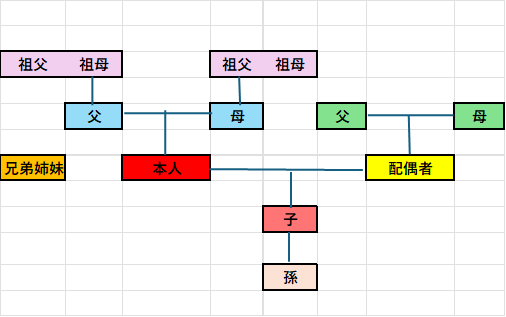 介護休業制度において、「私」に介護が必要になったときに、誰が「私」を介護出来るのかというというと「配偶者・父母・配偶者の父母・祖父母・兄弟姉妹・子・孫」が該当します。たくさんの身内が該当します。