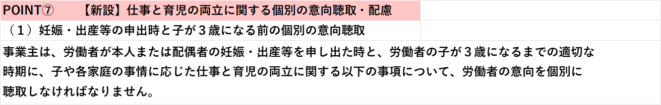 POINT⑦ 【新設】仕事と育児の両立に関する個別の意向聴取・配慮