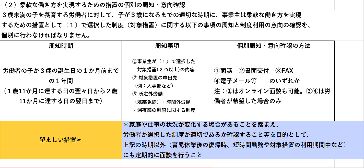 (2)柔軟な働き方を実現するための措置の個別の周知・意向確認