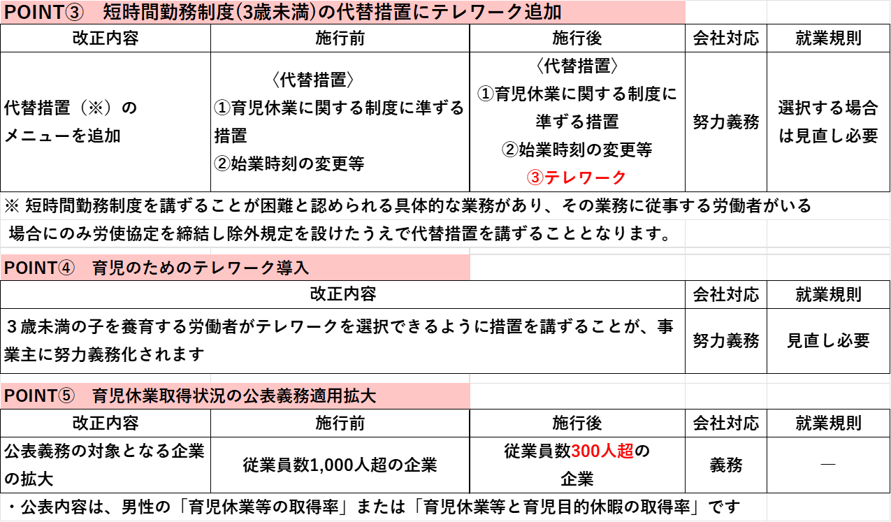 <育児休業制度に関する改正ポイント>